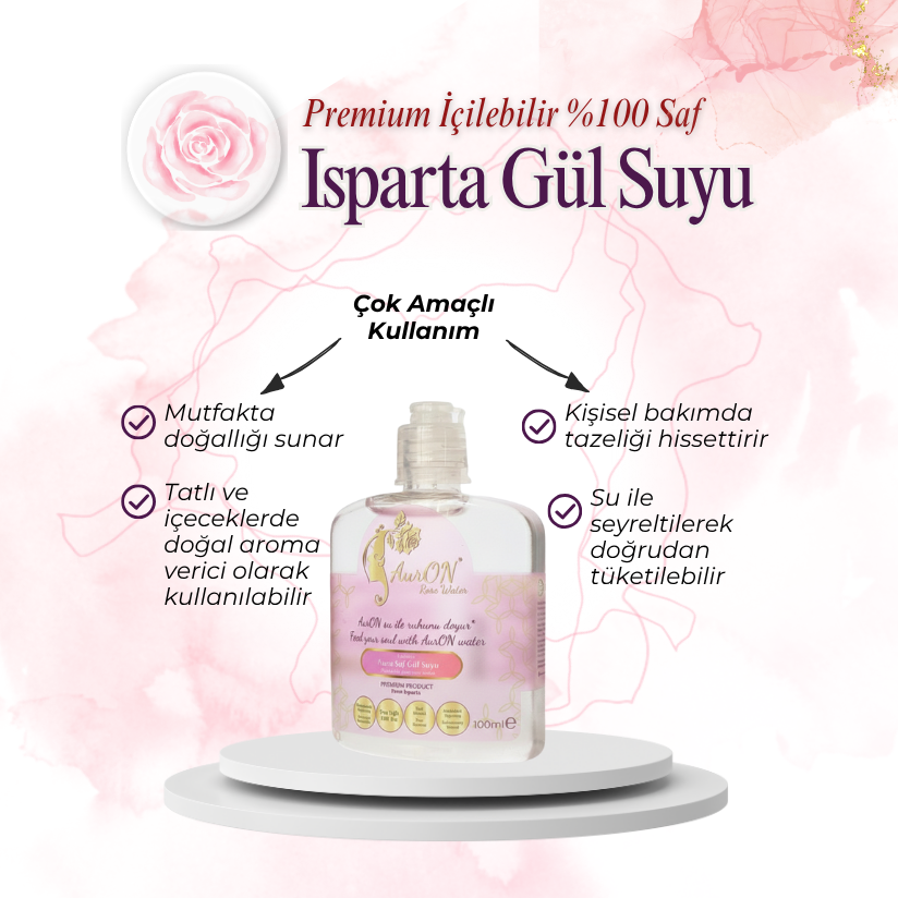 Premium İçilebilir %100 Saf Isparta Gül Suyu